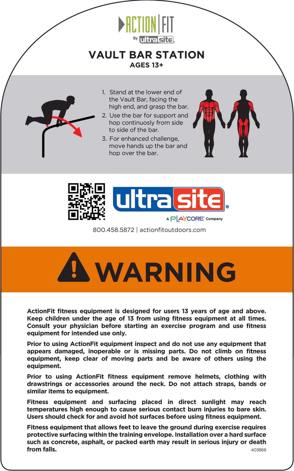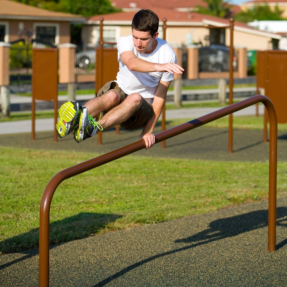 The Vault Bar develops muscle strength by having users grasp one end for support while hopping continuously from side to side. For a greater challenge, advanced users can jump completely over the bar. Designed for ages 13 and up, it’s a versatile piece for building power and agility in any outdoor fitness space.