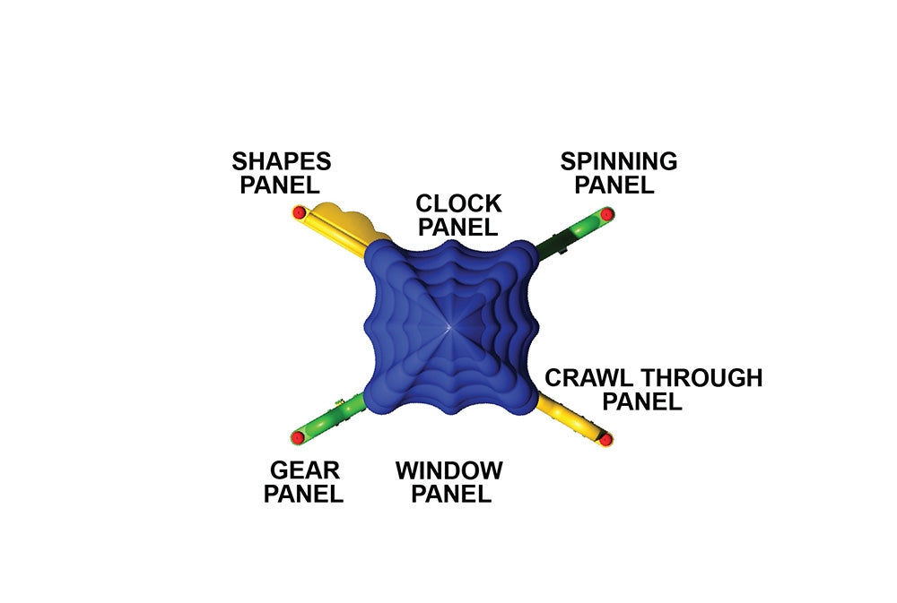Packed with six engaging play panels, each element was carefully selected to promote key developmental milestones for infants and toddlers.